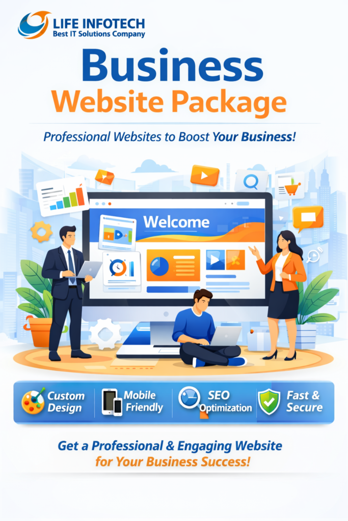 Life Infotech — one of the best IT companies — proudly presents its Business Website Package, crafted for businesses that want a powerful, high‑performing online presence. Whether you’re a growing company, startup, or established brand, our package gives you a professional website that reflects your identity, engages your audience, and drives results.